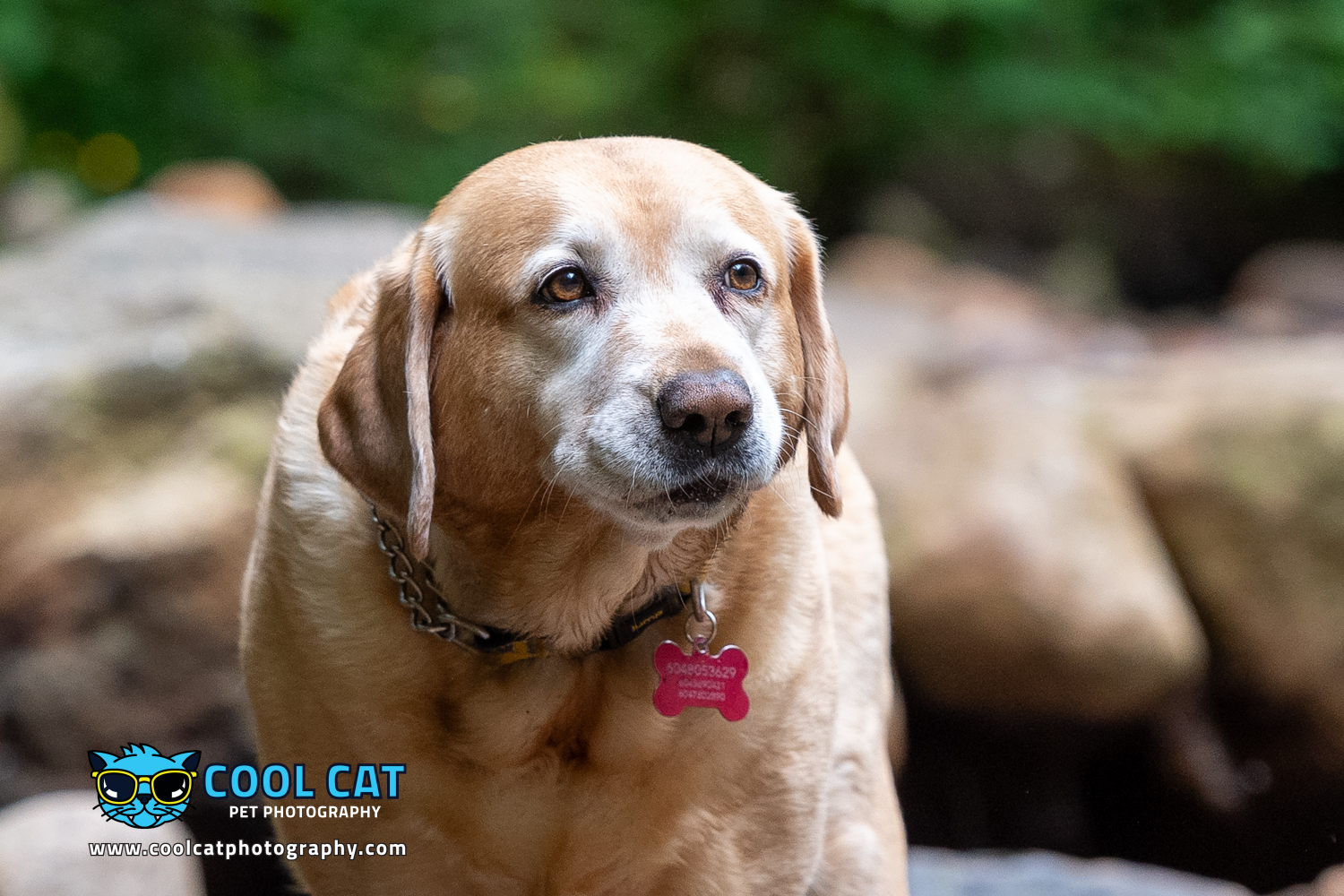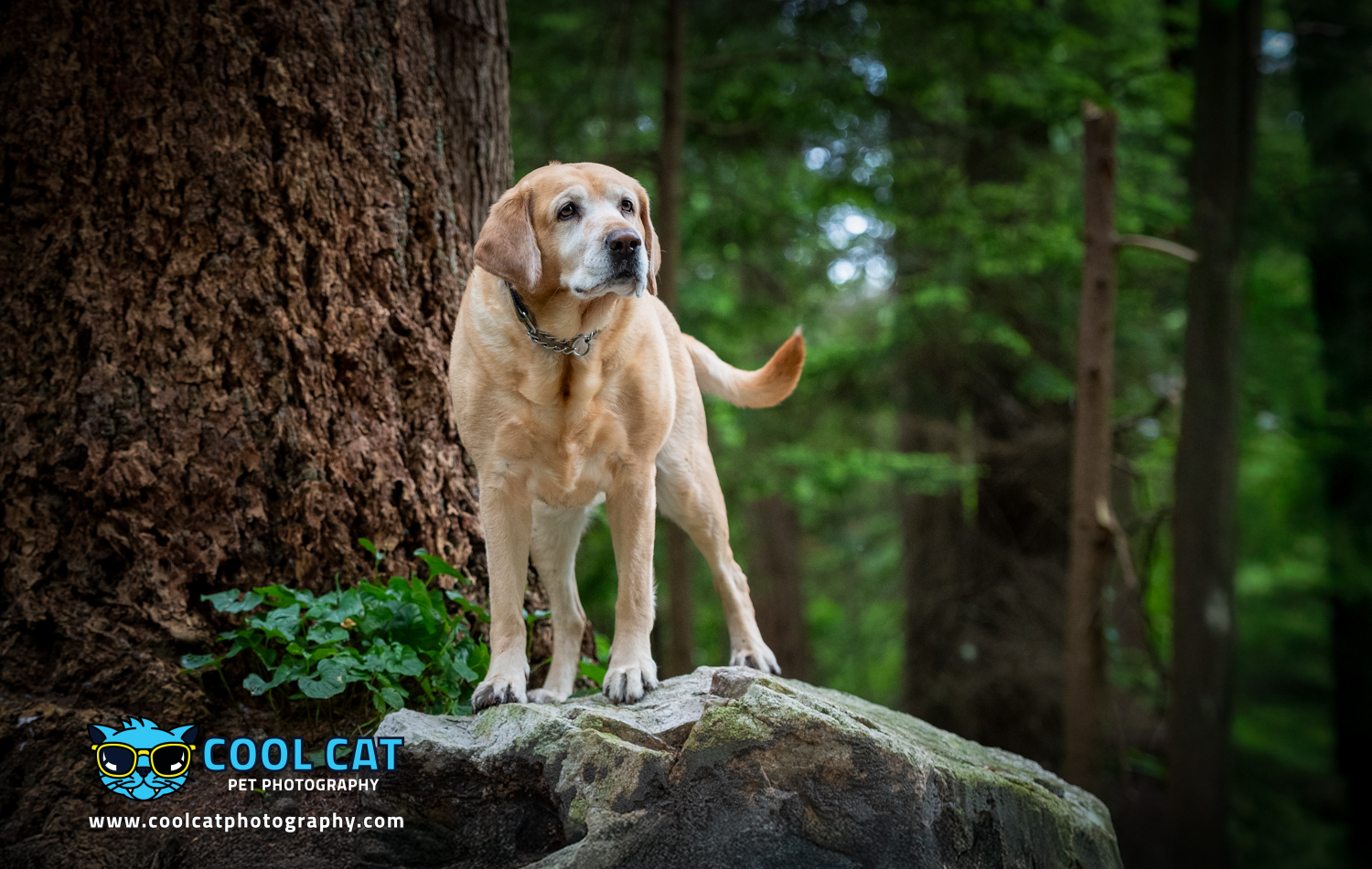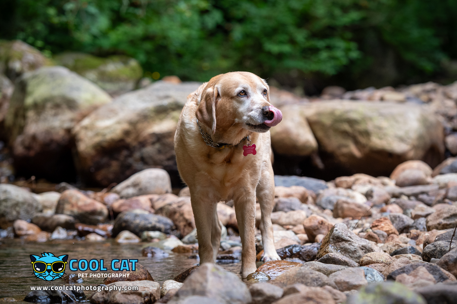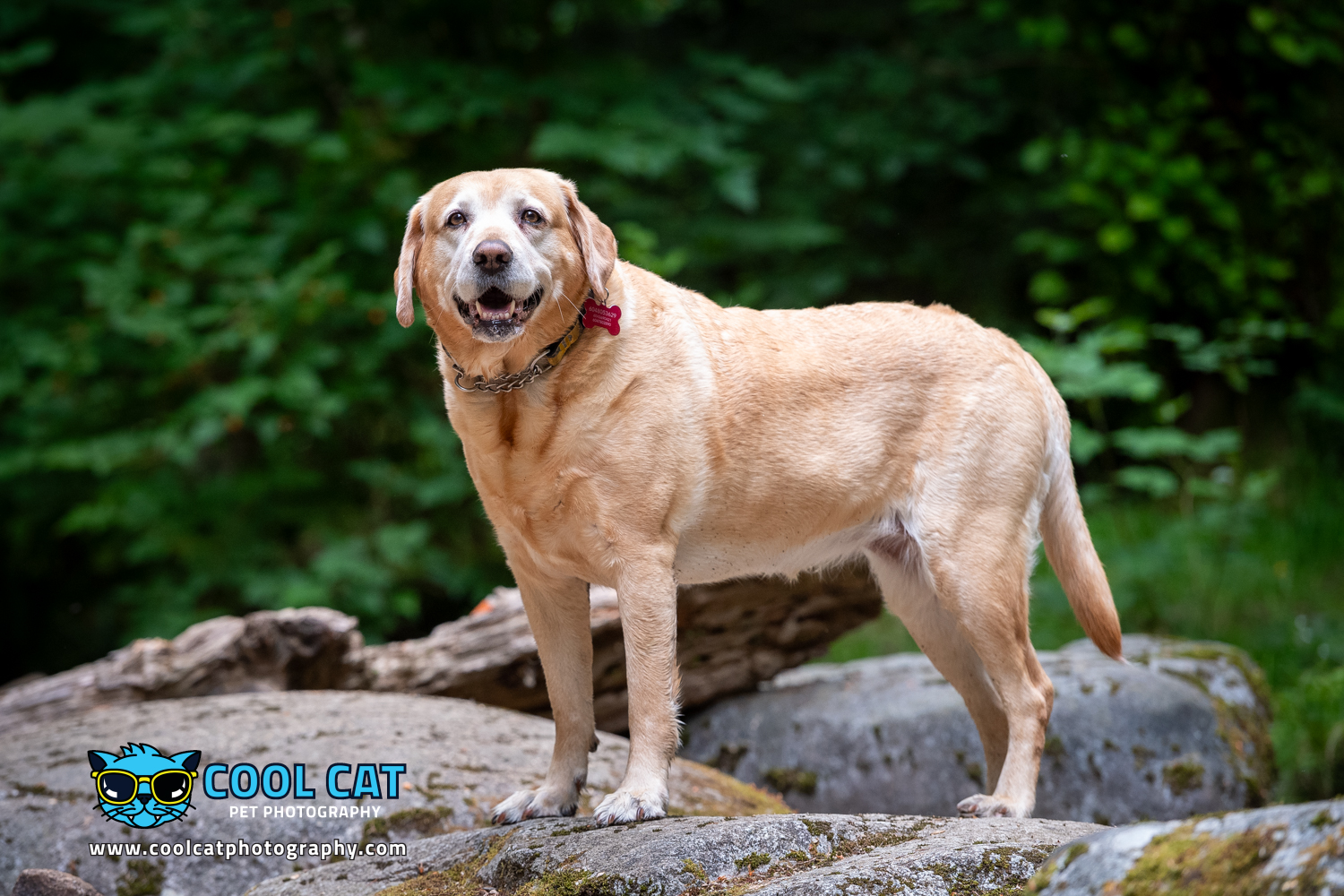After having chatted with Bonnie’s owner I went out and scouted a few places that I thought Bonnie would do well in – a place that was best for a 9 year old lab, and that she was familiar with. Whenever I work with a new client I always ask about the dog (or, cat) and where they would be most comfortable as well, as having an ideal backdrop that would make sense for the breed. Knowing that Bonnie was a bit older and her mobility was limited we ended up shooting in one of her favourite parks filled with creeks, tall cedars, Douglas Firs and lush, green ferns. The perfect place for Bonnie. She will look great surrounded by nature, the colours and down by the creek.